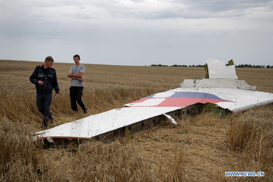 Rescuers work at the crash site of MH17 of Malaysian Airlines near the city of Shakhtarsk in Ukraine's Donetsk region, July 18, 2014. Malaysian Transport Minister Liow Tiong Lai said Friday that according to the International Civil Aviation Organization's Annex 13, the Ukrainian government should institute an investigation into the circumstances of the deadly MH17 incident, and be responsible for the conduct of the investigation. (Xinhua/Alexander Ermochenko) |