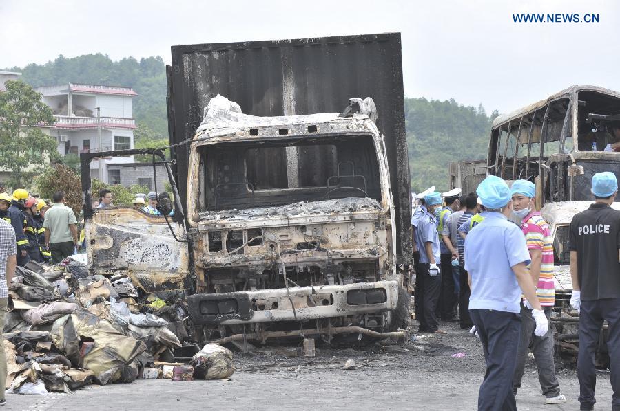 CHANGSHA, July 19 -- At least 38 people are confirmed dead and another five injured after a vehicle crash triggered fire and explosion on a central China highway early Saturday morning, police said.