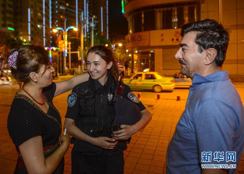 Dilreba Yaqup happens to meet her parents during the break of patrol. (Photo/Xinhua)