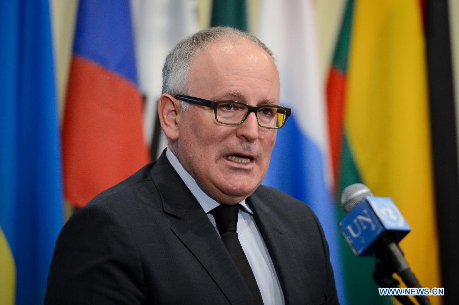 Dutch Foreign Minister Frans Timmermans speaks to media reporters after a United Nations Security Council meeting regarding the Malaysian Airlines MH17 crash, at the UN headquarters in New York, on July 21, 2014. The UN Security Council on Monday approved a resolution demanding safe and unrestricted access to the MH17 crash site, and calling for full cooperation with the international investigation. (Xinhua/Niu Xiaolei) |