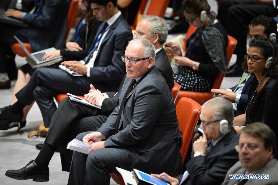 Dutch Foreign Minister Frans Timmermans (C) waits to address a United Nations Security Council meeting regarding the Malaysian Airlines MH17 crash, at the UN headquarters in New York, on July 21, 2014. The UN Security Council on Monday approved a resolution demanding safe and unrestricted access to the MH17 crash site, and calling for full cooperation with the international investigation. (Xinhua/Niu Xiaolei) |