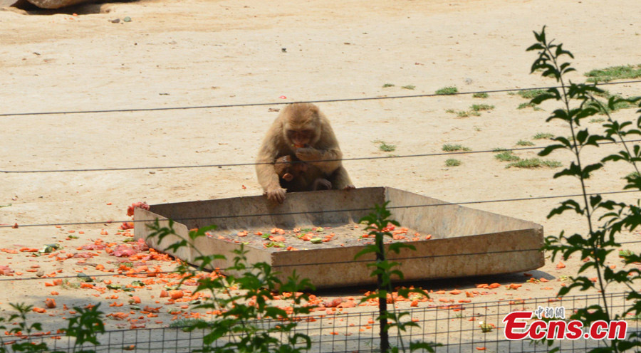 Animals are offered ice, shower, and watermelons to beat summer heat at Zhengzhou Zoo in Zhengzhou of Henan province on July 21, 2014. On Monday the city witnessed the highest temperature of nearly 40 degrees Celsius. [Photo/Liu Linzi]