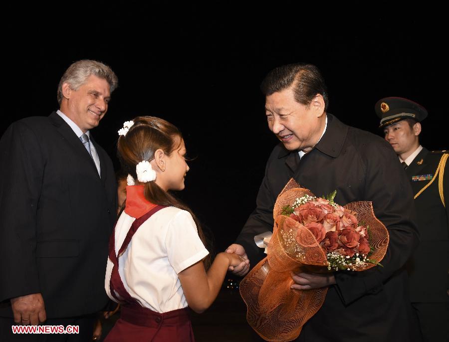 Chinese President Xi Jinping (R Front) arrives in Havana on July 21, 2014 for a state visit to Cuba. (Xinhua/Li Xueren)