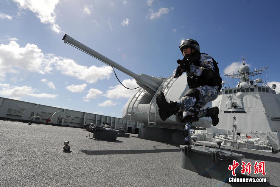 A member of Chinese navy commandos participates in the maritime exercise of the Rim of the Pacific (RIMPAC) multinational naval drill on July 21, 2014. (CNS/Mao Jianjun)