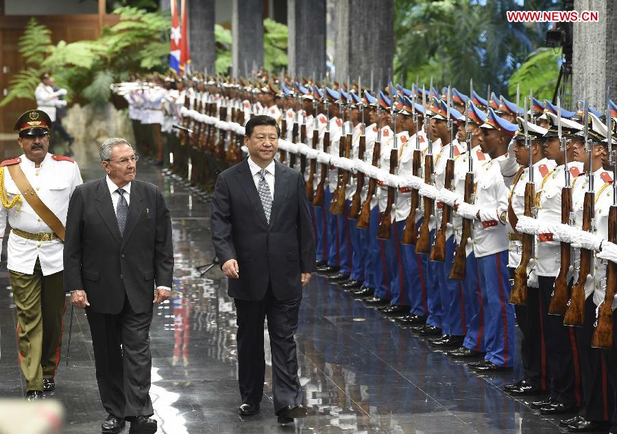 President Xi attends welcoming ceremony held by Cuban leader Raul Castro