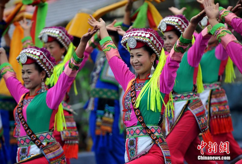 People celebrate Torch Festival on July 20, 2014. Torch Festival, a traditional carnival for the Yi ethnic group, is held annually on June 24 or 25 of the lunar calendar. (CNS Photo)