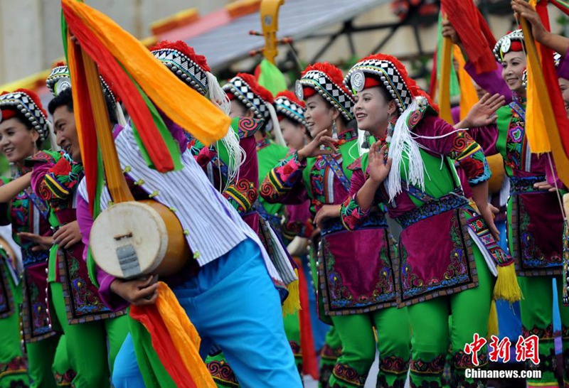 People celebrate Torch Festival on July 20, 2014. Torch Festival, a traditional carnival for the Yi ethnic group, is held annually on June 24 or 25 of the lunar calendar. (CNS Photo)