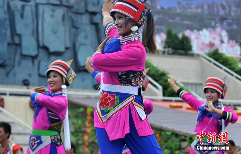 People celebrate Torch Festival on July 20, 2014. Torch Festival, a traditional carnival for the Yi ethnic group, is held annually on June 24 or 25 of the lunar calendar. (CNS Photo)