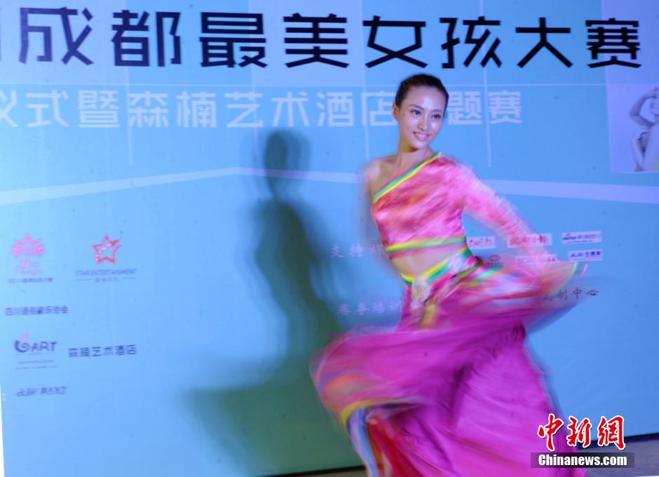 A girl shows at the 2014 Miss Chengdu Contest. (Chinanews.com/Liu Zhongjun)