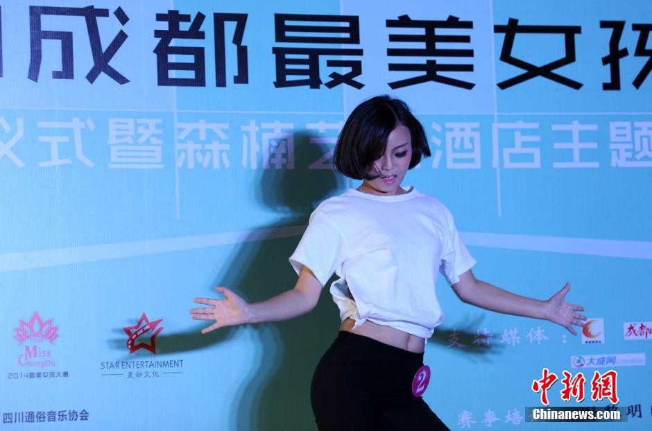A girl shows at the 2014 Miss Chengdu Contest. (Chinanews.com/Liu Zhongjun)