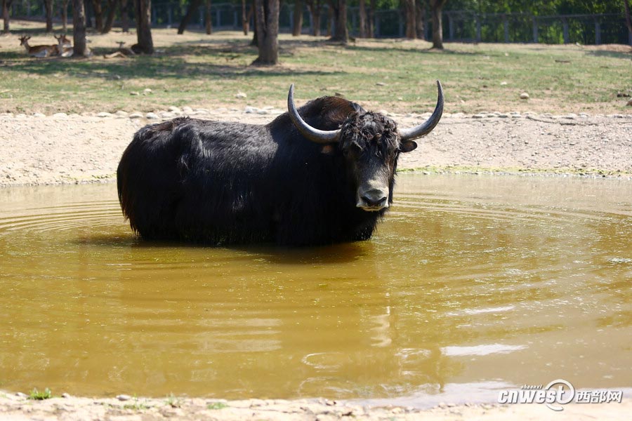 Heat waves have hit Xi'an recently. Breeders in a zoo provide green bean soup, ice cream and watermelon to animals. They've also offered air conditioners, swimming pools and cool showers to help animals remain cool in hot summer. (Photo: cnwest.com)