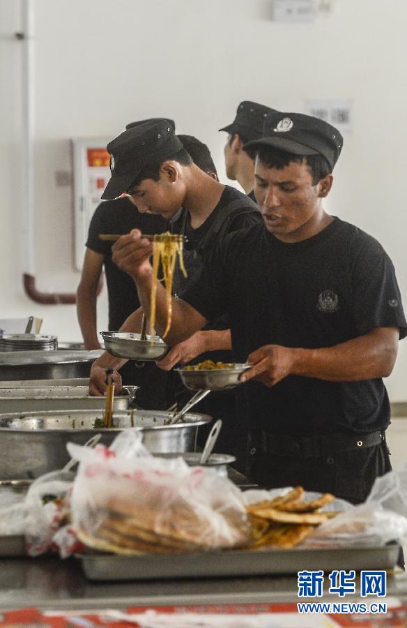 Special police officers have dinner. (Xinhua/ Zhaoge)