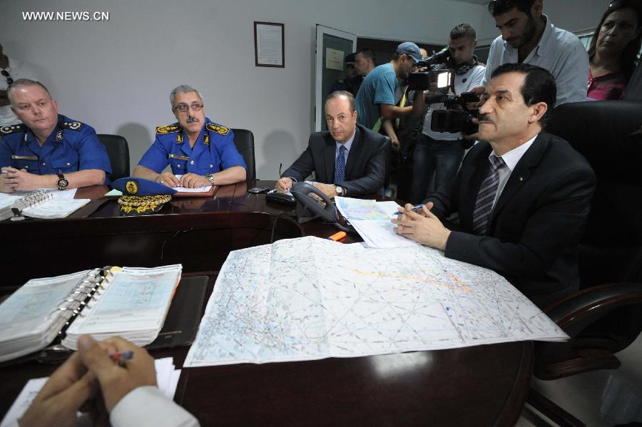 An Algerian crisis unit, chaired by Minister of Transport Amar Ghoul (R), meets at the Houari-Boumediene International Airport in Algiers on July 24, 2014, following the disappearance of an Air Algerie plane over Mali. (Xinhua)