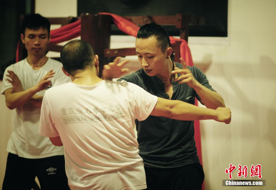 Wing Chun master Tu Tengyao teaches students in southwest China's Chongqing. He has more than 80 students from all walks of life, with the age varied from 8 to 50. (Photo/CNS)