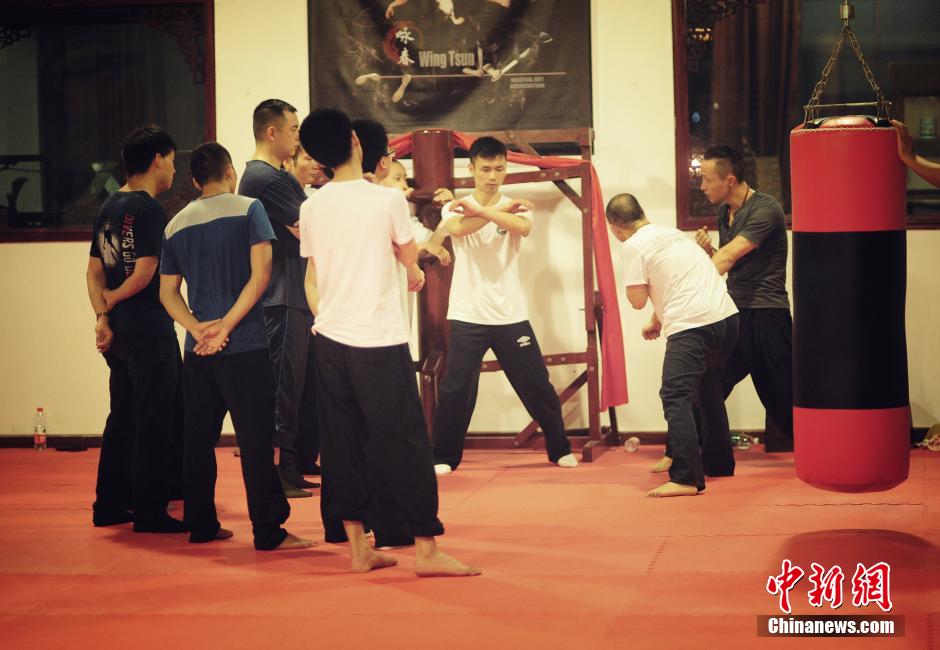 Wing Chun master Tu Tengyao teaches students in southwest China's Chongqing. He has more than 80 students from all walks of life, with the age varied from 8 to 50. (Photo/CNS) |