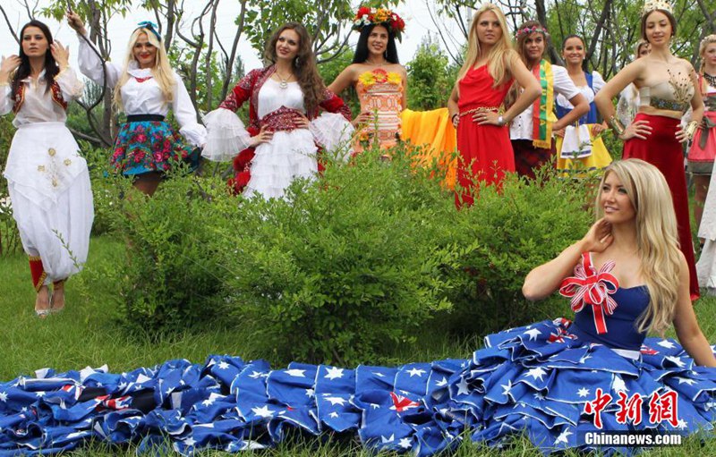 100 contestants from Germany, Russia, Australia, Argentina, Kazakhstan, Slovakia, Mongolia and China participate in the beauty contest held in Panjin, Liaoning province on July 22. (CNS/ Qian Xingfa)