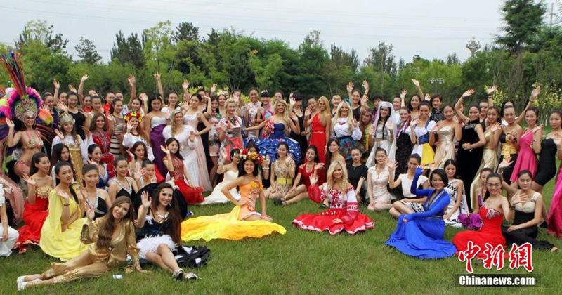 100 contestants from Germany, Russia, Australia, Argentina, Kazakhstan, Slovakia, Mongolia and China participate in the beauty contest held in Panjin, Liaoning province on July 22. (CNS/ Qian Xingfa)