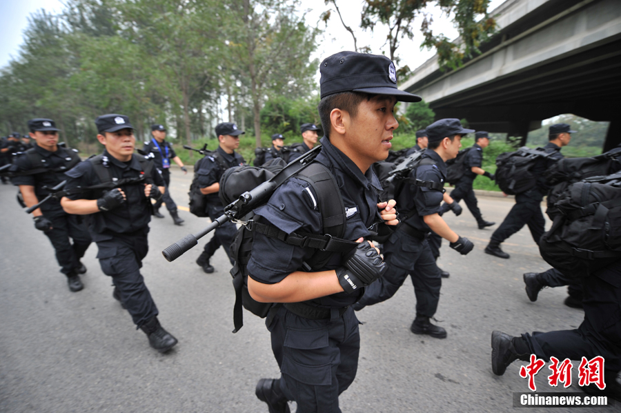 On July 24, Beijing Public Security Bureau holds anti-terrorism exercise to further test and improve the anti-terrorism capabilities. Police helicopters were used in the drill to transmit images. (CNS Photo)