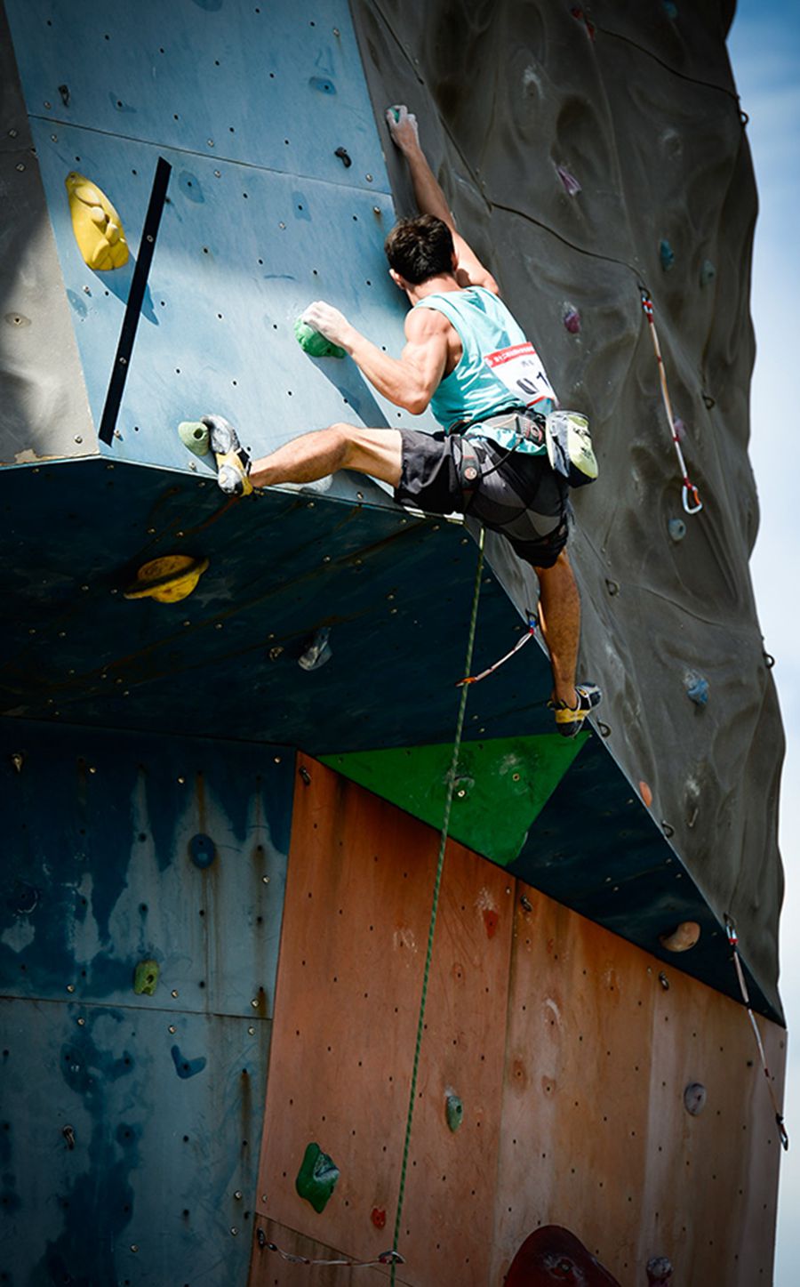 The Twelfth National College Climbing Championships start in Sichuan Institute of Tourism in Chengdu, July 24, 2014. The four-day tournament tests athletes in speed, difficulty of climbing and bouldering project. 245 athletes from 40 colleges and universities including Peking University, Donghua University, University of Macau, and 93 team leaders and coaches participated in the contest.(Xinhua/Li Qiaoqiao)