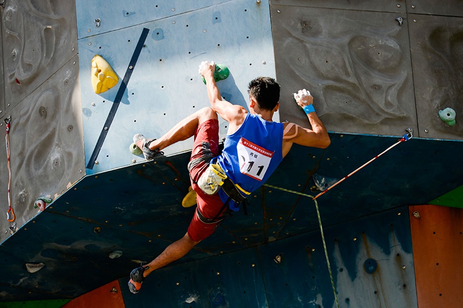 The Twelfth National College Climbing Championships start in Sichuan Institute of Tourism in Chengdu, July 24, 2014. The four-day tournament tests athletes in speed, difficulty of climbing and bouldering project. 245 athletes from 40 colleges and universities including Peking University, Donghua University, University of Macau, and 93 team leaders and coaches participated in the contest.(Xinhua/Li Qiaoqiao) |