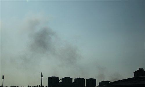 Smoke blankets north Donetsk after shelling and antiaircraft fire on the outskirts of the eastern Ukrainian city on Saturday. (Photo: Cui Meng/GT) |