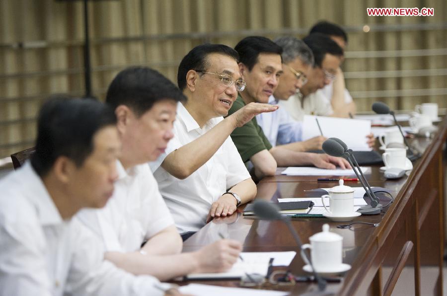 Chinese Premier Li Keqiang (3rd L) attends a symposium with heads of some newly-registered enterprises in Jinan, capital of east China's Shandong Province, July 25, 2014. (Xinhua/Huang Jingwen) |