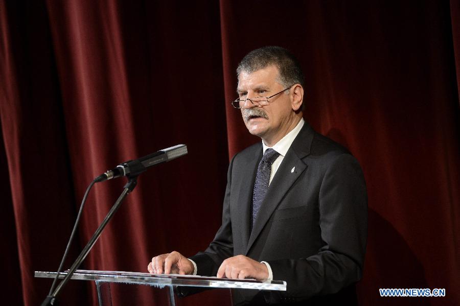 Hungarian Speaker of Parliament Laszlo Kover delivers a speech at a memorial concert in Budapest, Hungary, July 28, 2014. Hungary on Monday commemorated the beginning of the First World War (WWI) that took more than ten million lives and left the world in tatters. (Xinhua/MTI/Kovacs Tamas) |