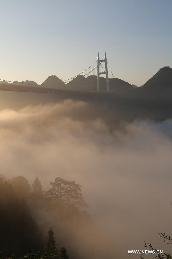 Photo taken on July 29, 2014 shows the scenery of Aizhai grand canyon in Jishou, central China's Hunan Province, July 29, 2014. (Xinhua/Peng Biao)