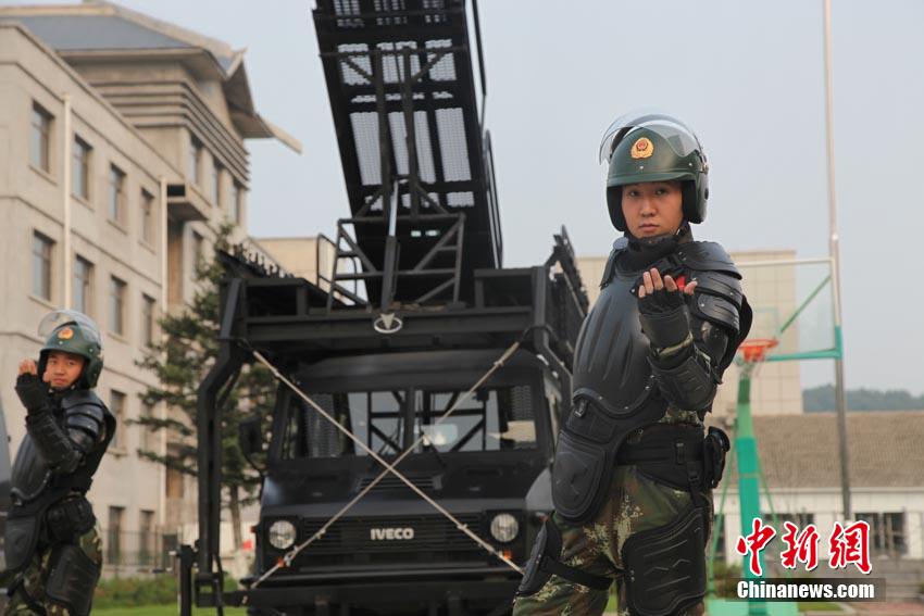 On July 29, armed police officers and soldiers in Jilin dance to the catchy tune of "Little Apple" to release pressure and enrich their cultural life. These soldiers are responsible for disposal of terrorist attacks, handling emergencies and city patrol. By the Chopsticks Brothers, "Little Apple" is one of the most popular songs in China. (CNS/Cang Yan)