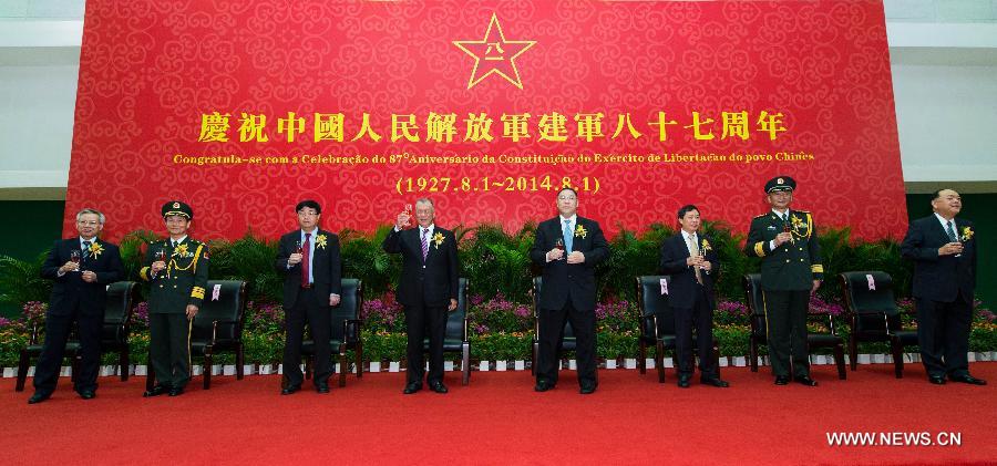 A reception is held to celebrate the 87th anniversary of the founding of the Chinese People's Liberation Army (PLA) by the PLA Garrison in the Macao Special Administrative Region (SAR), south China, July 31, 2014. (Xinhua/Cheong Kam Ka) |
