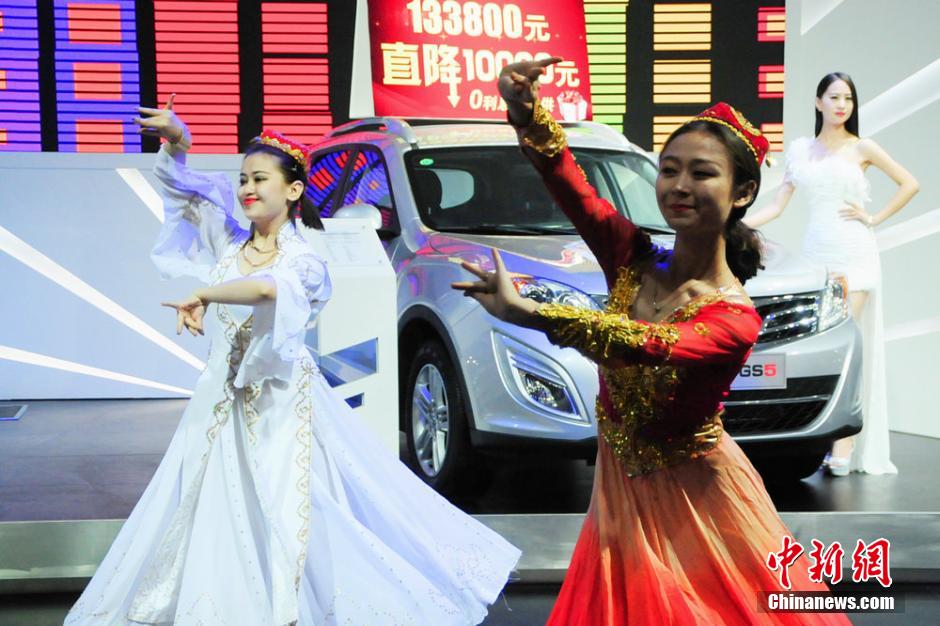 Photo taken on July 30 shows the beautiful models at Xinjiang International Automobile Exhibition in northwest China's Xinjiang Uygur Autonomous Region. (Photo/CNS)
