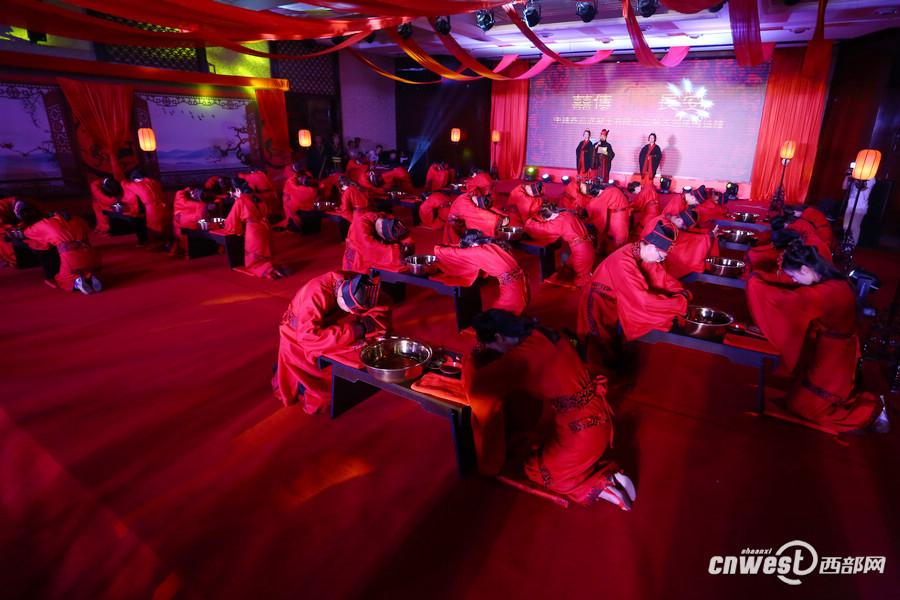 A total of 18 newlyweds attend a group wedding ceremony in Xi'an, capital of northwest China's Shaanxi province on Friday, as the "Qixi" festival approaches. They got married during the wedding wearing Han Chinese clothing, the costume of Han People in China, for the traditional service. "Qixi", marked on the seventh day of the seventh lunar month,is a traditional festival regarded as the Chinese Valentine's Day. (Cnwest Photo) |