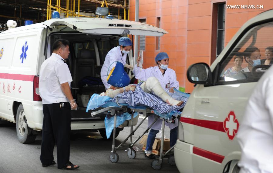 Doctors and nurses specializing in burns at Shanghai's Ruijin Hospital have arrived at Kunshan to help local hospitals, which are "crowded with injured patients," according to the hospital.