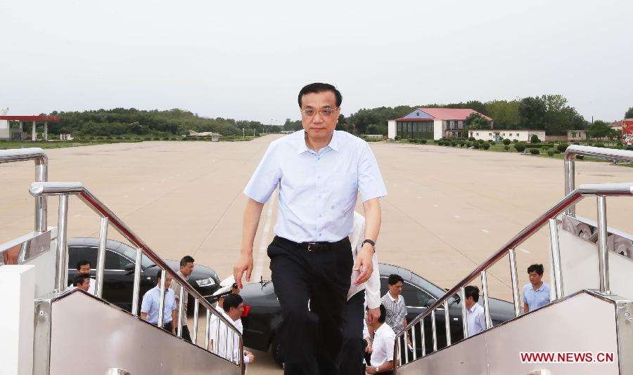 Chinese Premier Li Keqiang boards a plane heading for the earthquake zone in southwest China's Yunnan Province, Aug. 4, 2014. (Xinhua/Yao Dawei)
