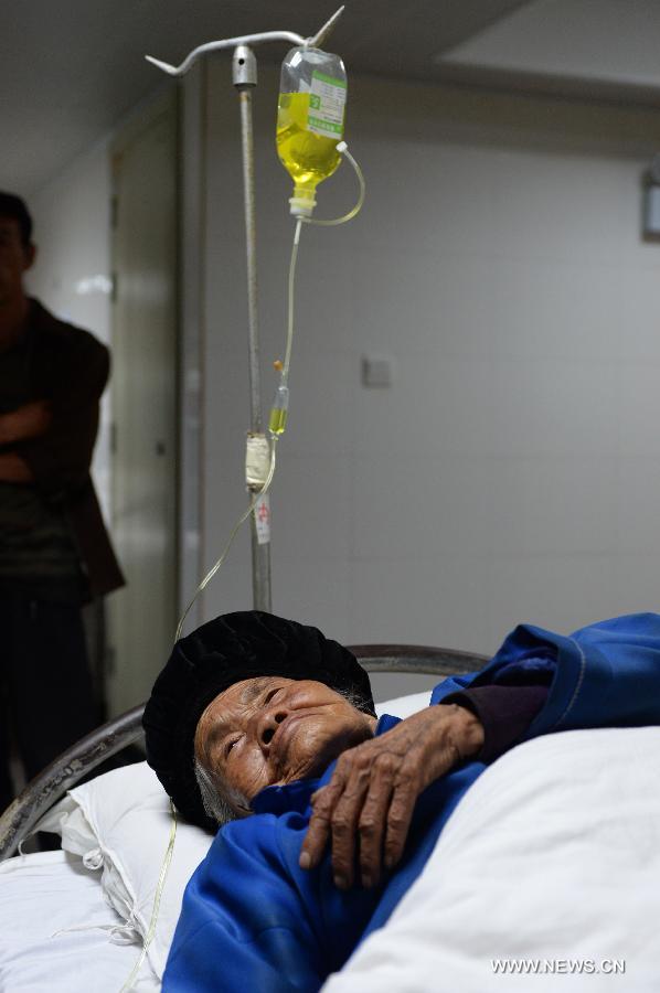 An injured victim receives medical treatment at Ludian people's hospital, in Ludian County of Zhaotong City in southwest China's Yunnan Province, Aug. 3, 2014. At least 367 people have been killed and more than 1,800 injured after a 6.5-magnitude earthquake rattled southwest China's Yunnan Province Sunday afternoon, rescuers said. (Xinhua/Hu Chao) |