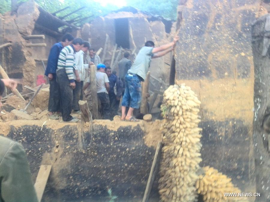 This photo taken by cellphone on Aug. 3, 2014 shows rescuers search for buried people in Qiaojia County after an earthquake in its nearby Ludian County of Zhaotong City in southwest China's Yunnan Province. A 6.5-magnitude earthquake jolted Ludian County at 4:30 p.m. Sunday (Beijing Time), said the China Earthquake Networks Center (CENC). By 6:50 p.m. Sunday, 26 have been killed and two are still missing in Qiaojia County. (Xinhua) |
