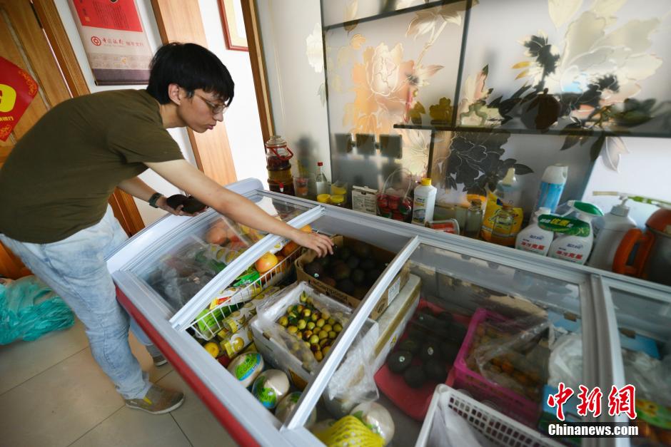 Zhao checks the fruits in his home in Zouping county, east China's Shandong province, July 29, 2014. (CNS Photo)