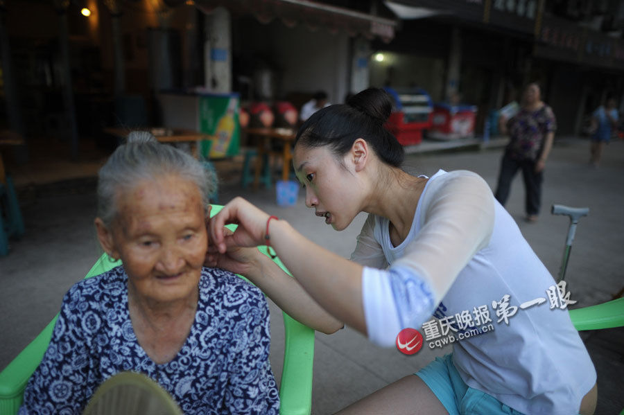 Huang Lihua, a post-90s girl, goes to work with her 88-year-old grandma, July 17, 2014. (Photo/cqwb.com.cn)