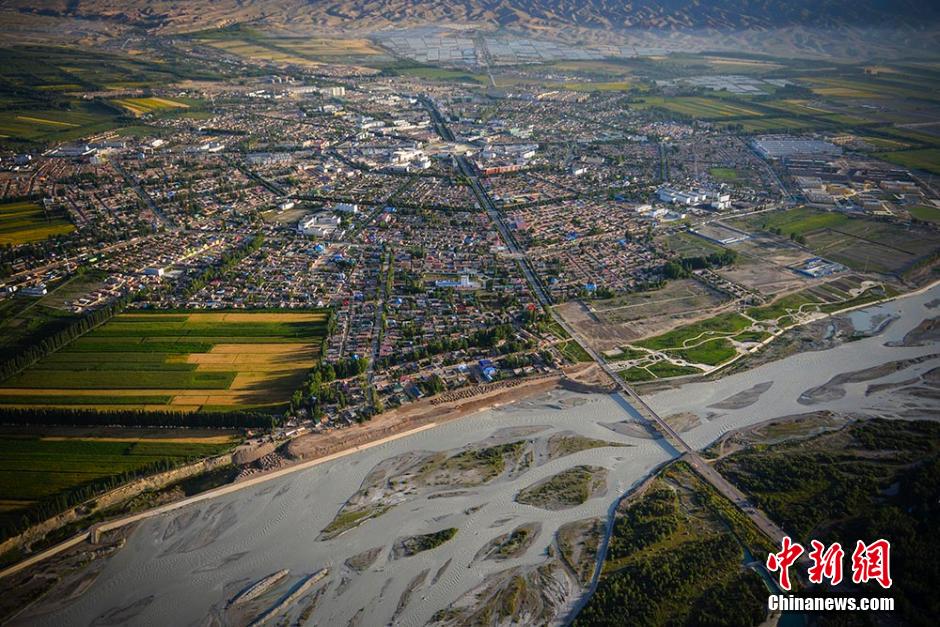 Constructed according to the "Bagua", or the eight trigrams used in Taoist cosmology to represent the fundamental principles of reality, Tekes County of northwest China's Xinjiang Uygur Autonomous Region is the biggest "Bagua" city in the world with a mazy street layout. Since August 3, 2014, tourists can enjoy the magnificent view of the city from the air. (Liu Xin/Chinanews) |