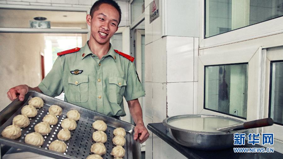 Chen Jihang makes breakfast for his comrades. (Xinhua/Wang Xin)