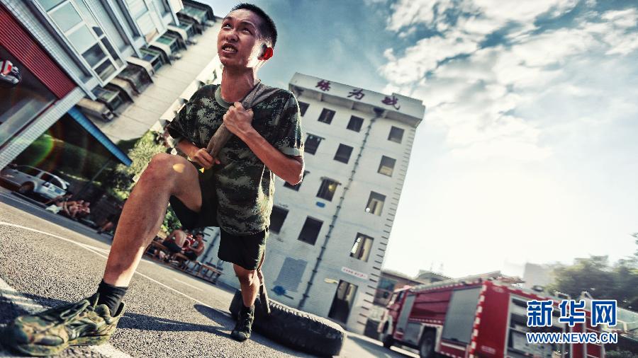 It took Chen Jihang almost two years to become a qualified fire fighter. Chen Jihang comes from Chongqing and made up his mind to become a soldier when he was a boy. Two year ago, Chen was enrolled into the army when he was still in high school. After three months of training, Chen was assigned to Shapingbei fire squadron. Chen grows in the squadron. Whenever a fire alarm is reported in the area he is responsible for, he will rush to the scene at once. He has become a strong and qualified fire fighter. (Xinhua/Wang Xin) |