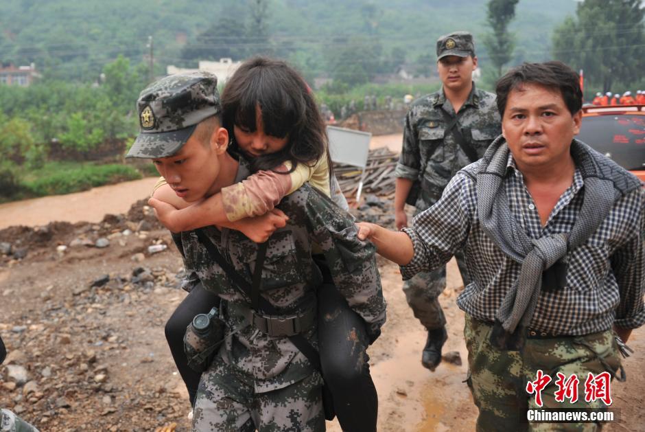 The rescue forces save wounded people on August 4, 2014. (Chinanews/Ren Dong)