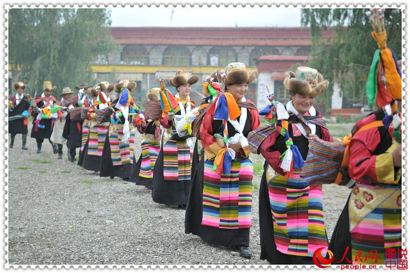 “Ongkor” in Tibetan means marching around the farm land. With a history of more than 1500 years, it is a traditional celebration of good harvest. The photo shows the Ongkor Festival celebrations in Zhanang County, Shannan Prefecture of Tibet. (People.cn)