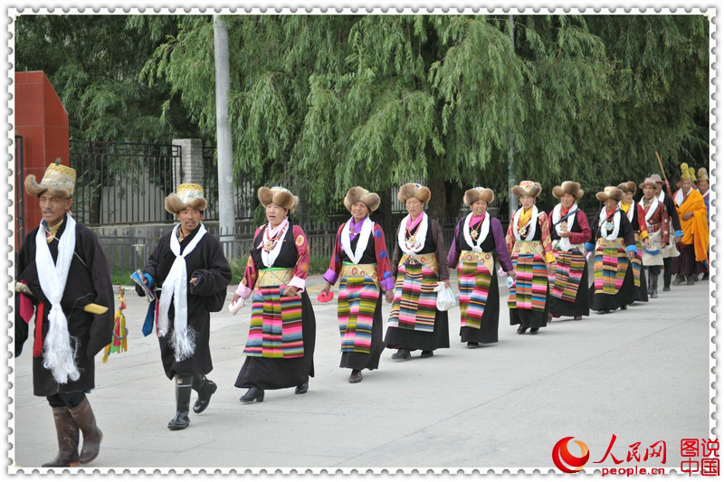 “Ongkor” in Tibetan means marching around the farm land. With a history of more than 1500 years, it is a traditional celebration of good harvest. The photo shows the Ongkor Festival celebrations in Zhanang County, Shannan Prefecture of Tibet. (People.cn)