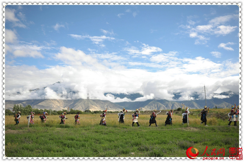 “Ongkor” in Tibetan means marching around the farm land. With a history of more than 1500 years, it is a traditional celebration of good harvest. The photo shows the Ongkor Festival celebrations in Zhanang County, Shannan Prefecture of Tibet. (People.cn)