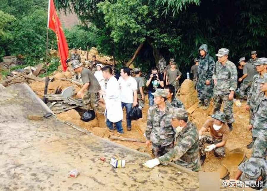 The rescuers remove the debris at 3:03 p.m. on August 5, 2014. (Photo/ynxxb.com)