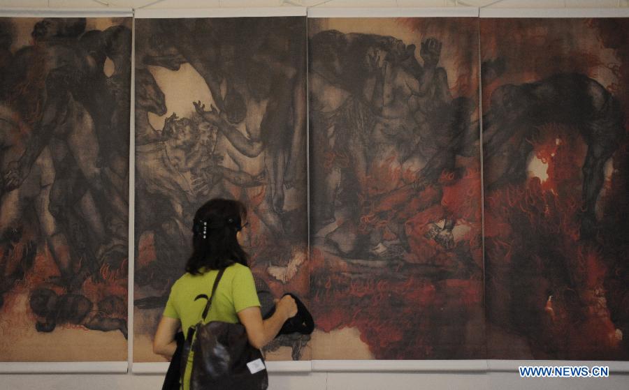 A visitor looks at the Hiroshima Panels marking the 69th anniversary of the US atomic bombing of Hiroshima at Maruki Gallary in Saitama, Japan, Aug. 6, 2014. (Xinhua/Stringer)