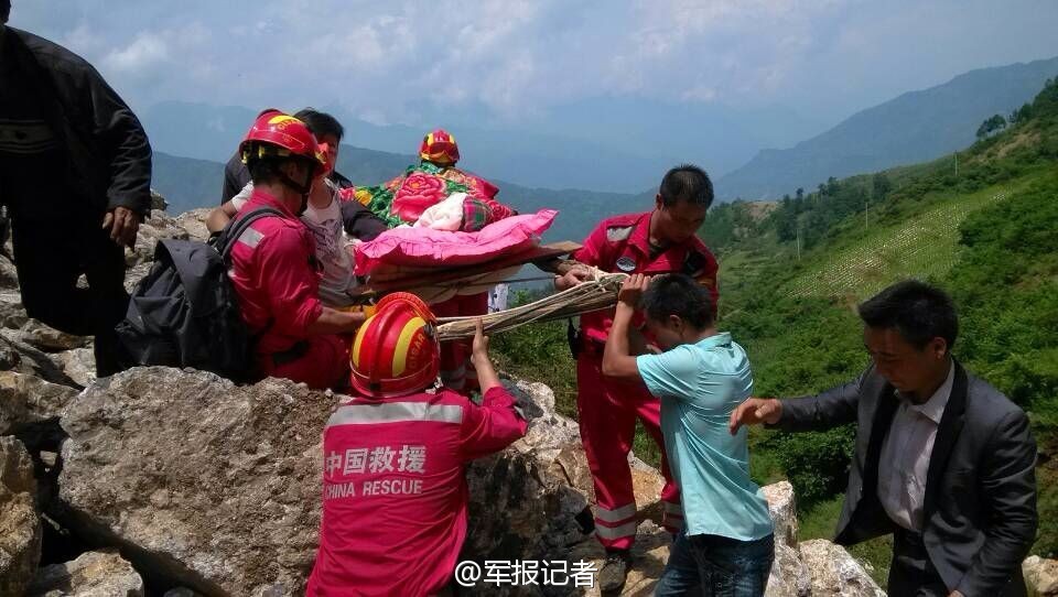 Thirteen members of the China International Search & Rescue Team rescue a severely wounded woman around 20 kilometers away from the epicenter of the Yunnan earthquake. (JZ.81.CN)