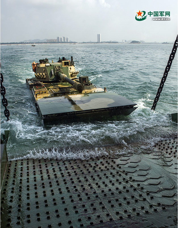 On August 3, 2014, an amphibious armored vehicle unit of Nanjing Military Region successfully conducted an all-floating loading and beach landing drill in East China Sea. (www.81.cn/Jiang Jiangao)