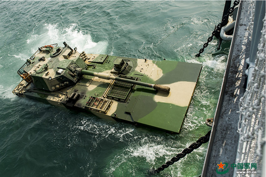 On August 3, 2014, an amphibious armored vehicle unit of Nanjing Military Region successfully conducted an all-floating loading and beach landing drill in East China Sea. (www.81.cn/Jiang Jiangao)